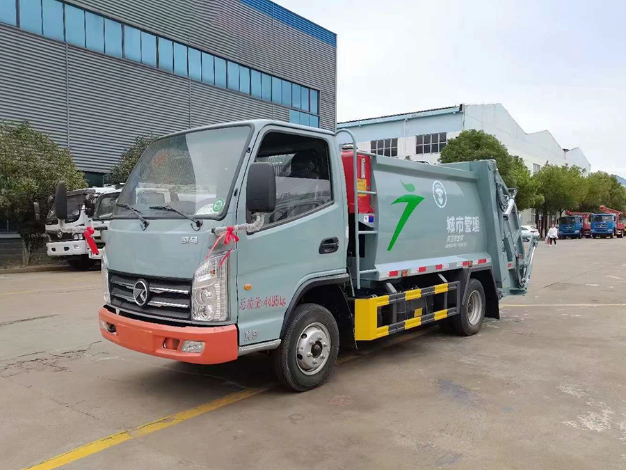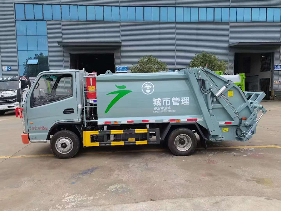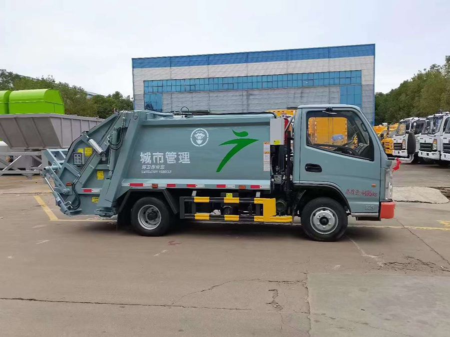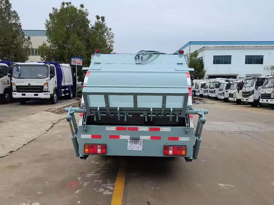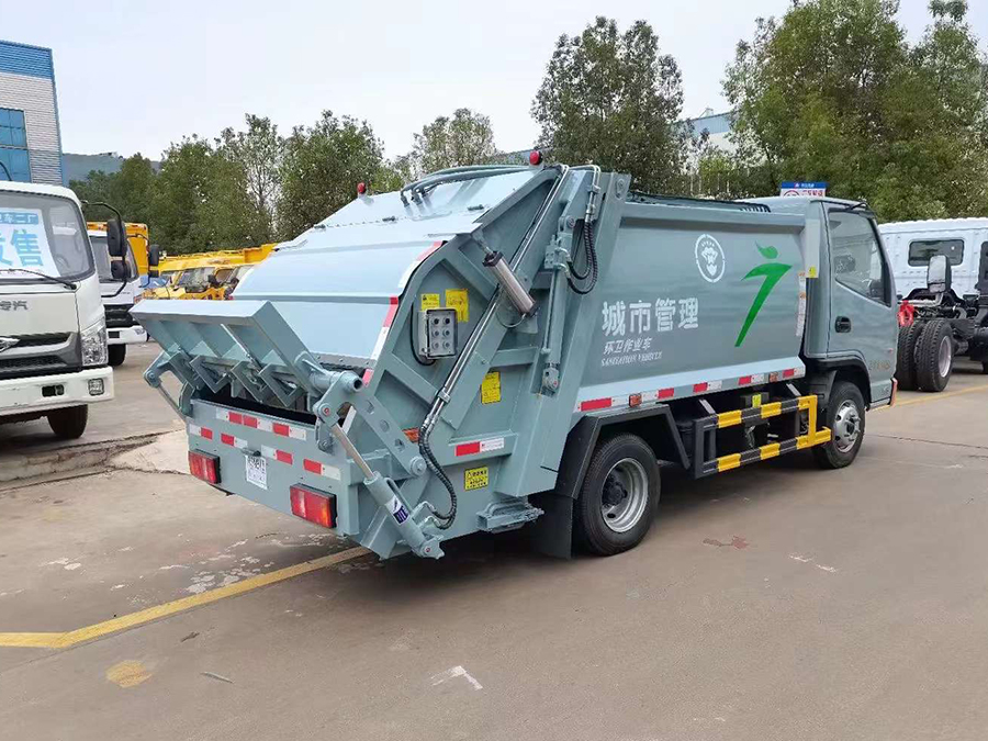 廂體有效容積4.5方,弧形箱體,采用專用鋼板制作,配套威森博樂多路閥,徐州全球通液壓油鋼管,皖液液壓油泵,填裝器舉升油缸帶液壓鎖裝置,采用PLC電控系統(tǒng),帶一鍵操作和手動操作兩種模式,電控操作盒3個,分別安裝在駕駛室內(nèi)及車尾部各一只,方便操作,帶污水收集箱,尾部帶厚橡膠密封壓條。